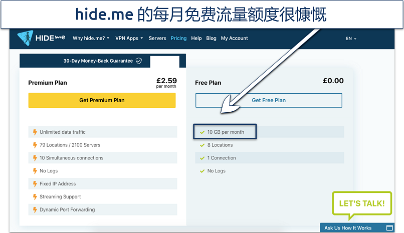 hide.me 的每月免费流量额度高达 10GB。虽然还是有限制,但足够玩 Roblox 长达 20 小时,对比其他免费 VPN(Avira Phantom 的流量额度只有 500MB),hide.me 算是十分大方。